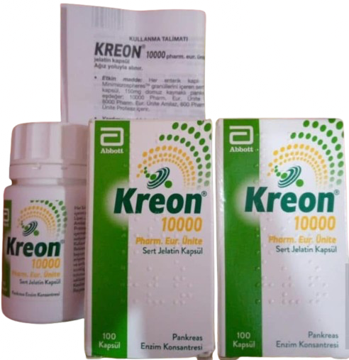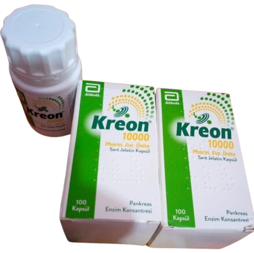 Kreon 10000 IU Capsules are a pancreatic enzyme replacement therapy (PERT) used to treat exocrine pancreatic insufficiency (EPI). This condition occurs when the pancreas fails to produce enough digestive enzymes, resulting in poor digestion and nutrient absorption. Kreon contains pancreatin, a mixture of digestive enzymes including lipase, amylase, and protease, which help break down fats, carbohydrates, and proteins in the food we eat.