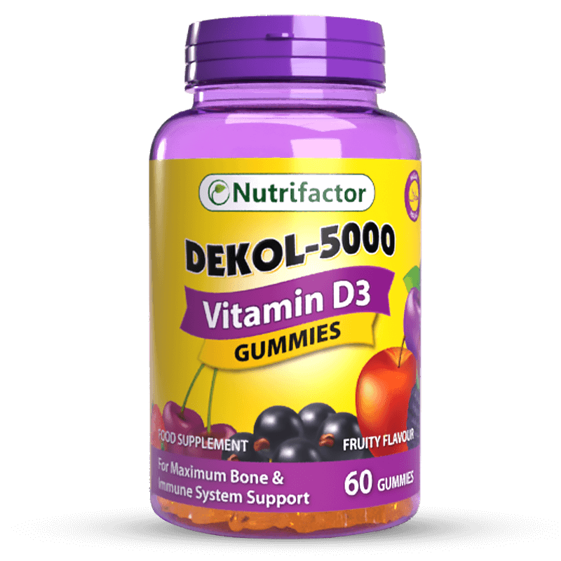 - Nutrifactor’s Dekol-5000 helps to provide the extra strength of Vitamin D3, packed in an easy to chew and delicious gummy, specially formulated for people with higher Vitamin D needs or deficiency to support stronger bones, teeth and muscles.