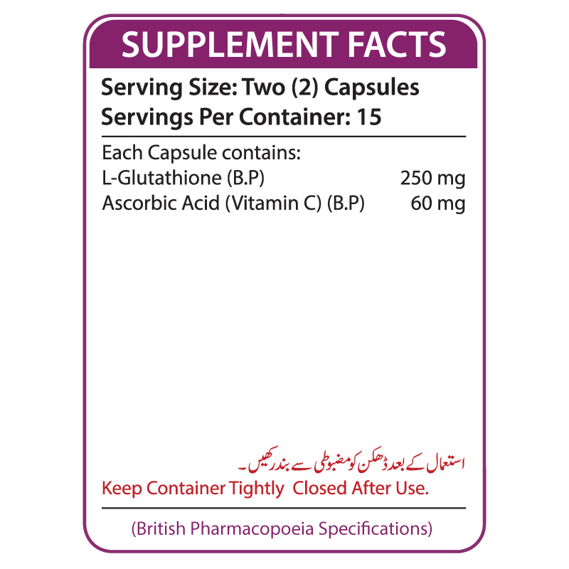 - L-Glutathione is a master antioxidant which supports body’s defense against free radicals which helps to stop premature aging of cells. It also helps to detoxify toxins from the body.