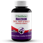 - Nutrifactor’s Maxzoom is a food supplement containing 21 essential nutrients which play important role in growth, strength and the healthy appearance of hair, nails and skin.